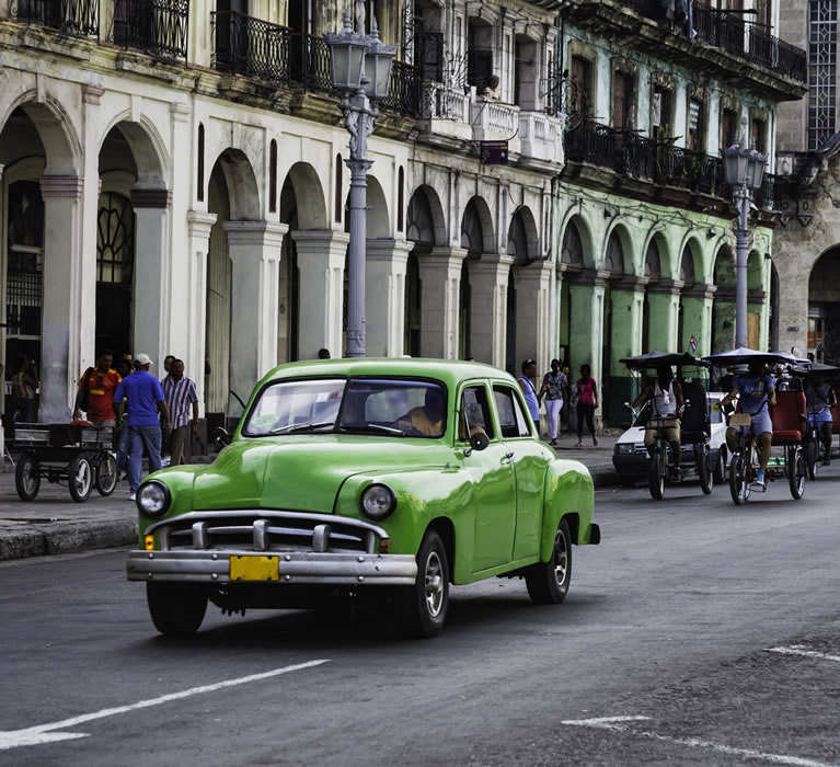 4. Unik bilpark: På grunn av importrestriksjoner er Cubas veier hjem til mange klassiske amerikanske biler fra 50-tallet. Med begrenset tilgang til importerte kjøretøy har Cuba en unikt lav tetthet av biler på veiene. Dette har ført til at det er vanlig å se en blanding av klassiske amerikanske biler fra 1950-tallet og eldre sovjetiske modeller som fremdeles er i bruk.
