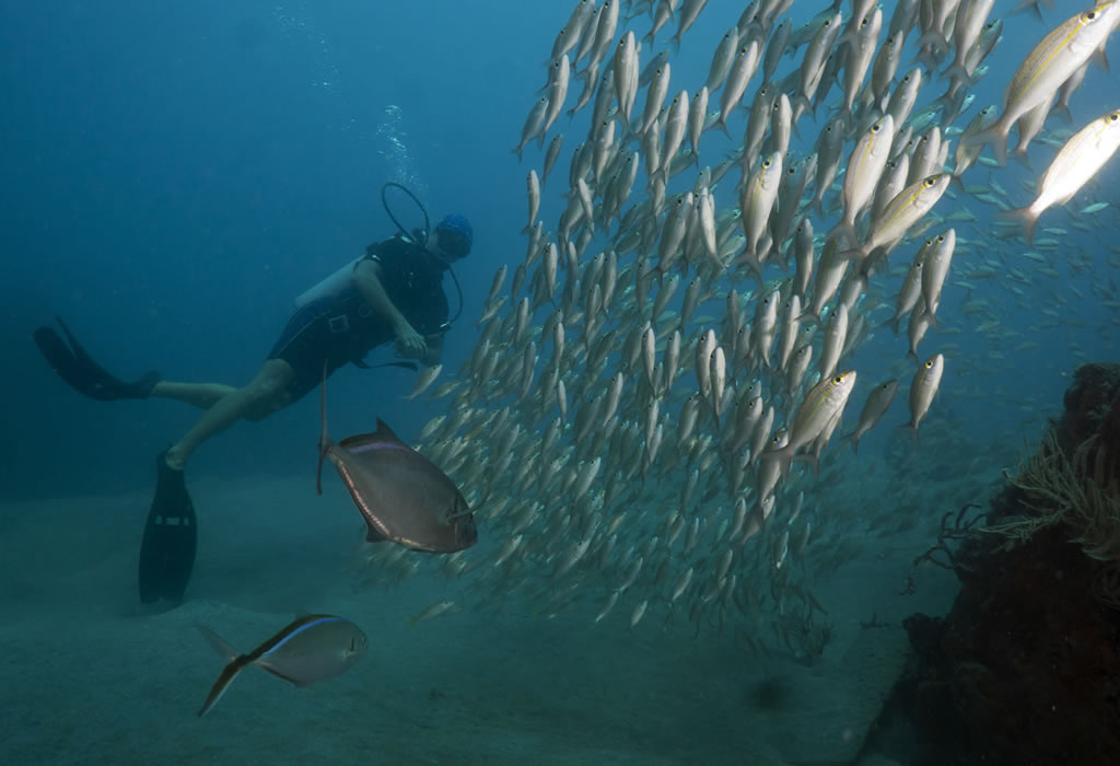 • Korallrev og mangfold: Dykkere kan utforske spektakulære korallrev som er hjem for et mangfold av marint liv, inkludert tropiske fisker, skilpadder, rokker og haier. Revene er i utmerket tilstand på grunn av øyas forpliktelse til bevaring, noe som gir en levende og fargerik opplevelse under vann.