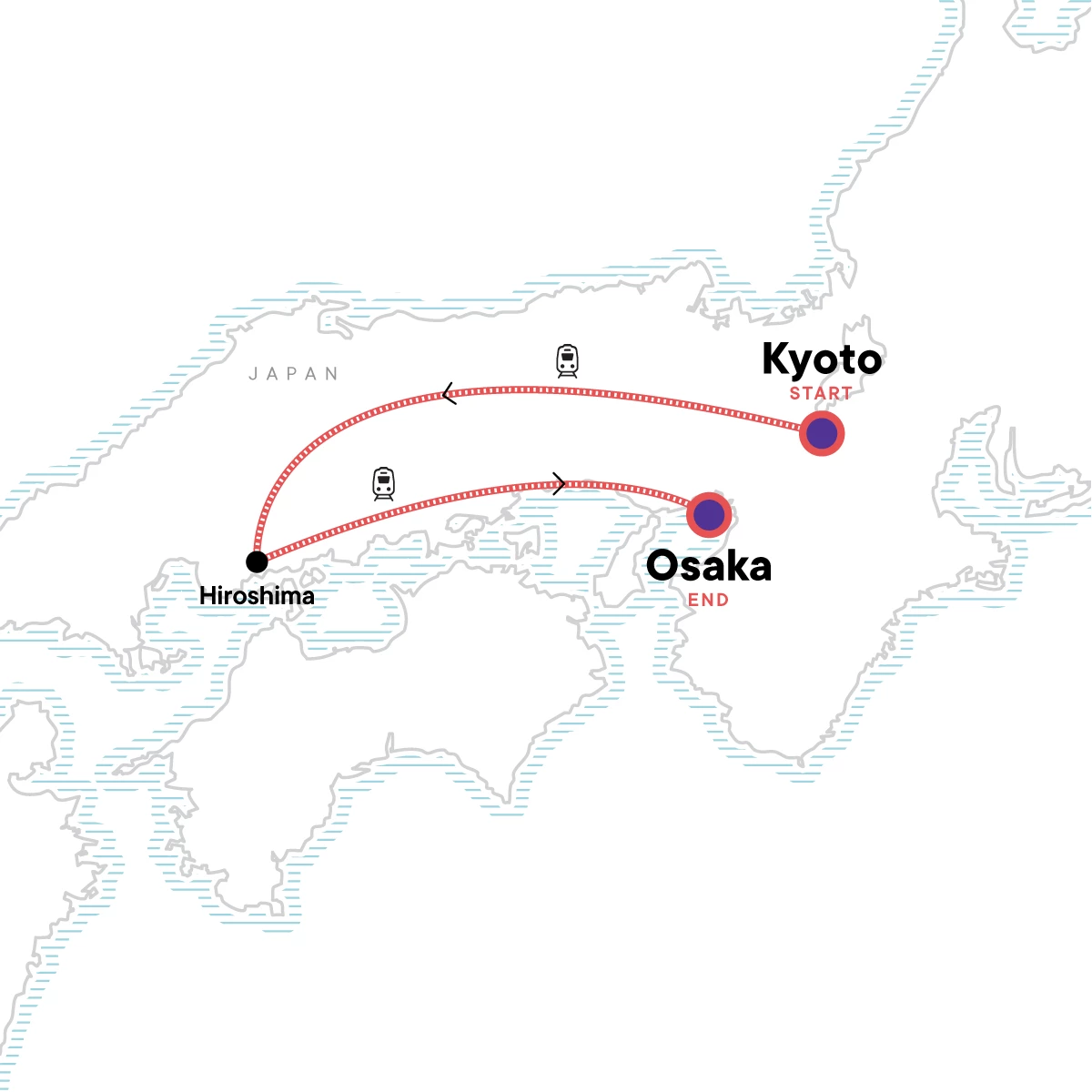 Your Big Night Out Moment: Osaka. Miyajima Island visit. Free time in Kyoto, Hiroshima, and Osaka. All transport between destinations and to/from included activities.