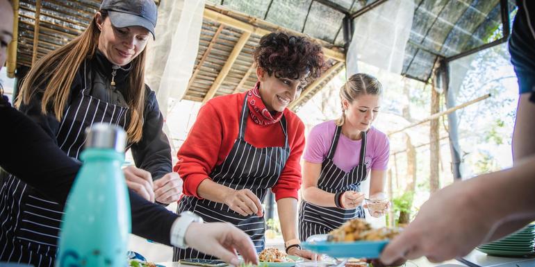 Travelling with G Adventures you experience the vast array of wonderful food that is available out in the world. Generally meals are not included in the trip price when there is a choice of eating options, to give you the maximum flexibility in deciding where, what and with whom to eat. It also gives you more budgeting flexibility, though generally food is cheap. Our groups tend to eat together to enable you to taste a larger variety of dishes and enjoy each other's company. There is no obligation to do this though. Your CEO will be able to suggest favourite restaurants during your trip. While trekking in remote regions, food is included, plentiful and made of fresh local ingredients. For all trips, please refer to the meals included and budget information.
