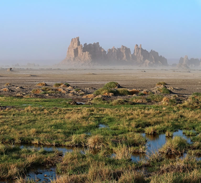 Lac Abbe– Få med deg et besøk til dette «utenomjordiske» landskapet med varme kilder, utrolige steinformasjoner og et økosystem rikt på dyreliv med flamingoer, ibis fuger, strutser, hyener og gaseller.