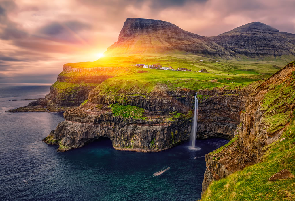 Færøyene har en imponerende natur som vil ta pusten fra deg. Øyene er kjent for sine dramatiske fjellandskap, bratte klipper og grønne daler. En av de mest ikoniske severdighetene er Vestmanna Sea Cliffs, som er en spektakulær klippeformasjon som strekker seg over 600 meter opp fra havet. Her kan du ta båtturer og se de imponerende fuglefjellene som befolker klippene.
