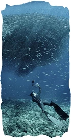 Moalboal begynner å bli mer og mer berømt innen fridykkermiljøer og dette skyldes primært 2 grunner. Av en eller annen grunn har sardinene lagt sin elsk på området rundt Moalboal og i motsetning til den mer berømte "Sardine Run" i Sør Afrika holder Moalboals sardiner seg stort sett her hele året. Det er noe spesielt å fridykke sammen med 10 000 vis av sardiner som har trukket seg sammen til en tett ball! For de mer erfarne fridykkere finnes det også en del interessante vrak på rundt 20m dyp.