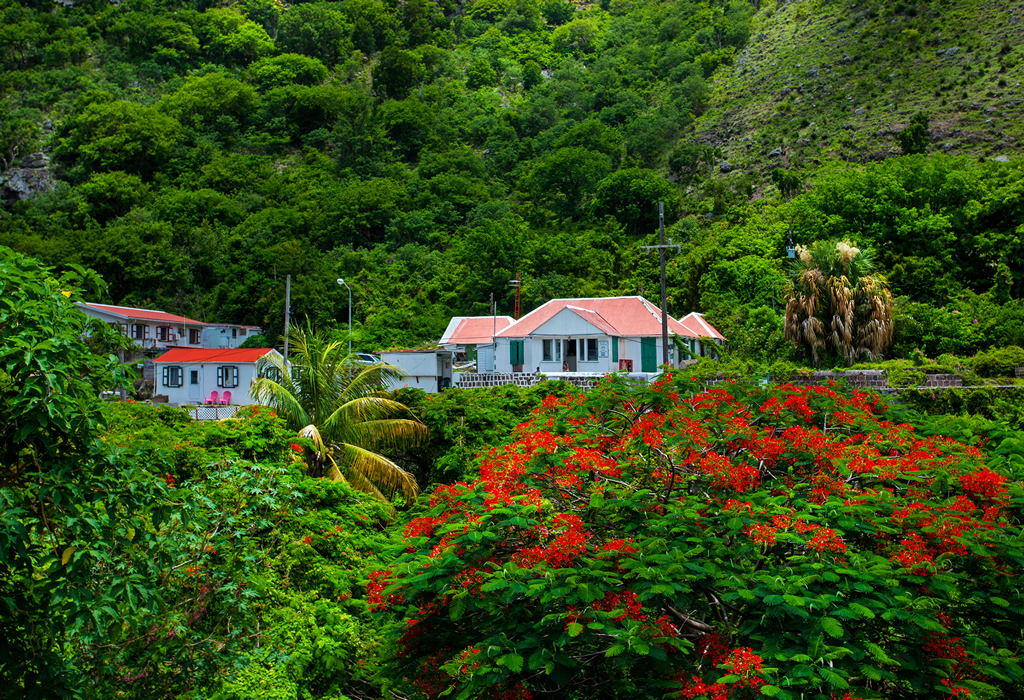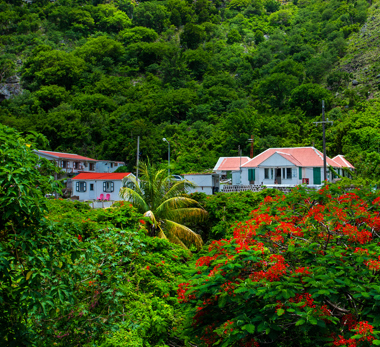 Tett vegetasjon dekker det meste av Sabas dramatiske fjellsider og daler og inniblant dette finner du små bosetninger.