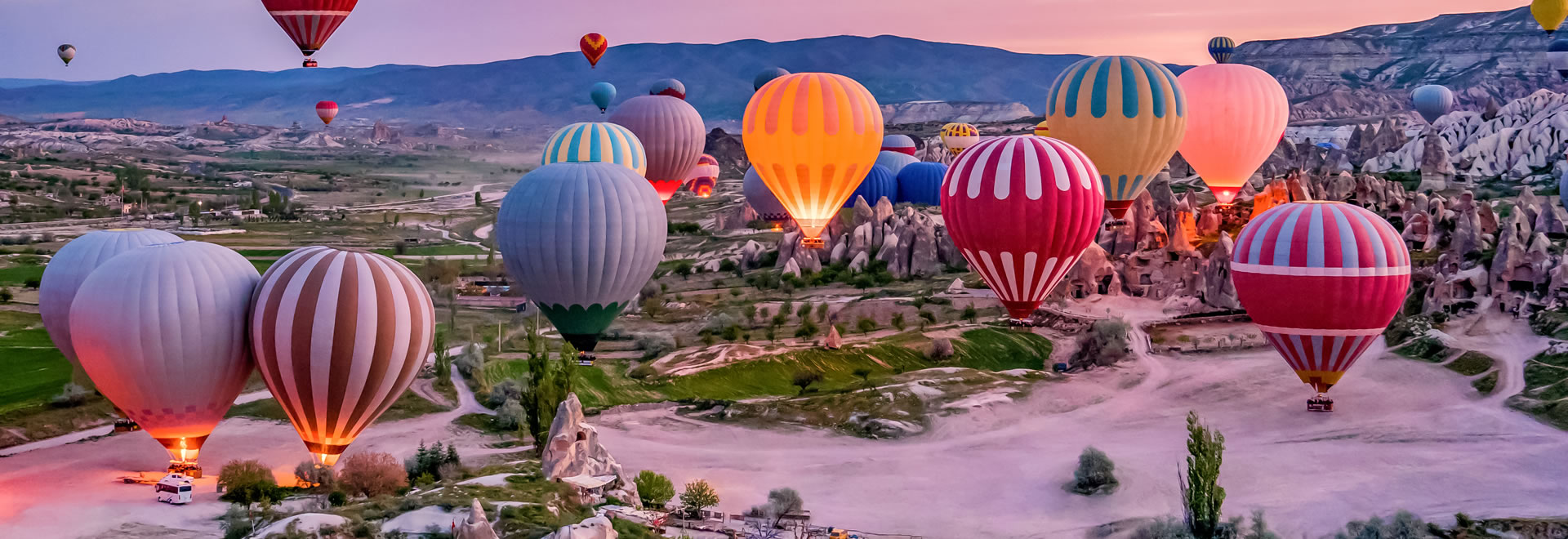 Kappadokiaregionen - Kappadokia er en kjent region i Anatolia. Det er hjem til mange eldgamle steder, men den mer kjente attraksjonen er de merkelige fjellformasjonene av skorstensformede Hoodoo som finnes i hele området. En av de viktigste byene i regionen er Goreme, som kan skryte av hus og bygninger skåret ut fra de omkringliggende klippene. Turister kan også oppleve en uiforglemmelig sghtseeing fra luften, siden luftballongflyvning er en av de mest populære aktivitetene.