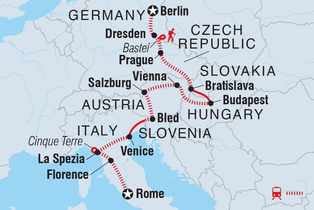 Guten Tag! Welcome to Germany. Your adventure begins with a welcome meeting at 6 pm tonight in Berlin. If you arrive early, maybe take a Spree River cruise, visit the multiple museums and galleries at Kulturforum Potsdamer Platz or stop by the impressive Berliner Dom Cathedral. After your meeting, why not join your newfound travel pals for dinner? Berlin’s food is a mix of classic German with Bavarian, Italian and Middle Eastern influences. But who can go past a traditional currywurst, schnitzel or pretzel together with a stein of beer.
