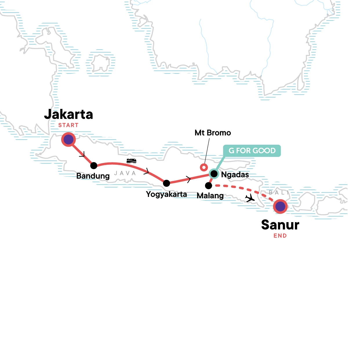 Your Welcome Moment: Welcome Moment - Meet Your CEO and Group. Jakarta city tour. Prambanan temple complex visit. Borobudur visit. Mt Bromo sunrise visit. Beach time in Sanur. Internal flight. All transport between destinations and to/from included activities.