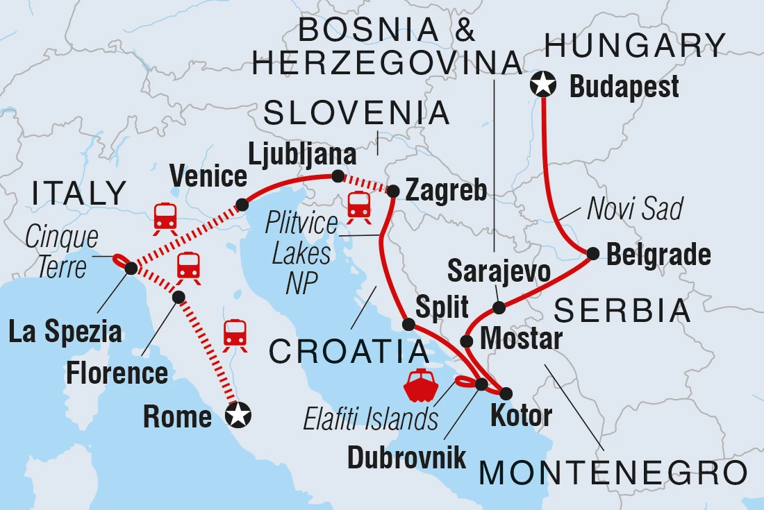 Leave Montenegro by bus this morning, riding along the beautiful southern coast of Croatia to Dubrovnik. When you arrive, the day is free for you to explore this medieval city at your own pace. There is so much to see and do here, so ask your leader if you’re stuck for ideas. You might like to take a boat trip to nearby Lokrum Island, where you’ll find the French-built Fort Royal Castle, a monastery and a botanical garden that dates back to when the Austrian archduke Maximilian had his holiday home on the island. Tonight, maybe find a secluded beach spot to watch the sunset or enjoy a harbourside meal with the group for dinner.