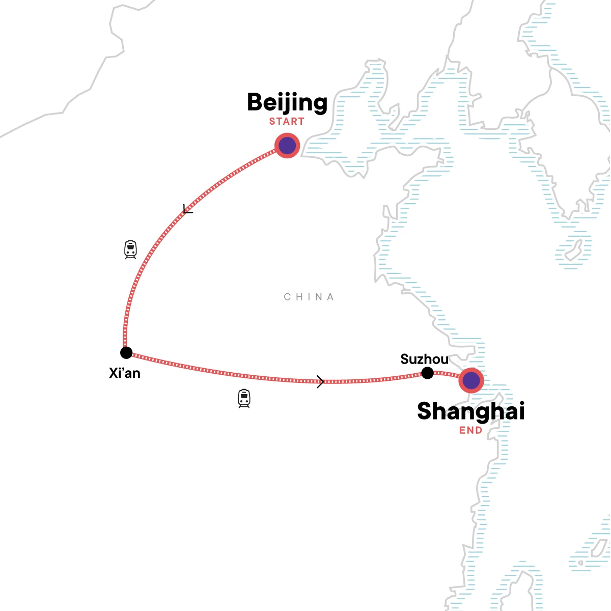 Trek along the Great Wall, visit the Forbidden City in Beijing and the canal town of Suzhou, experience a local meal and the Terracotta Warriors in Xi'an, witness an exciting acrobatic performance in Shanghai.