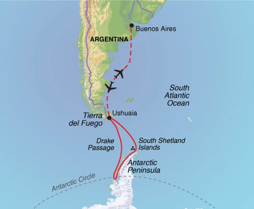 All Polar itineraries should be treated as a guide only - it is possible that, amongst other things, the capricious nature of wind, visibility and ice, intelligence from previous sailings, changes in local landing regulations or the expert opinion of the crew onboard may lead to adjustments to the route published.