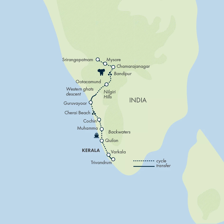 Join fellow cyclists to explore the idyllic south, from the Western Ghats to the beaches of Kerala
