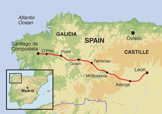 Since the 9th century, the French Way has led thousands of pilgrims on an 800km journey across northern Spain, winding from the Pyrenees across the wheat fields of old Castile to pass through to Leon and onwards to Santiago. Your eight-night self-guided cycling holiday begins in Leon with the route taking in the last 225km of the pilgrimage trail. Leon is the seat of the Spanish Kings and is full of soaring cathedrals and hushed convents. Your cycling route then builds through the Galician countryside to a spectacular finale at Santiago de Compostela's majestic Baroque cathedral, the last resting place of St James the apostle.
