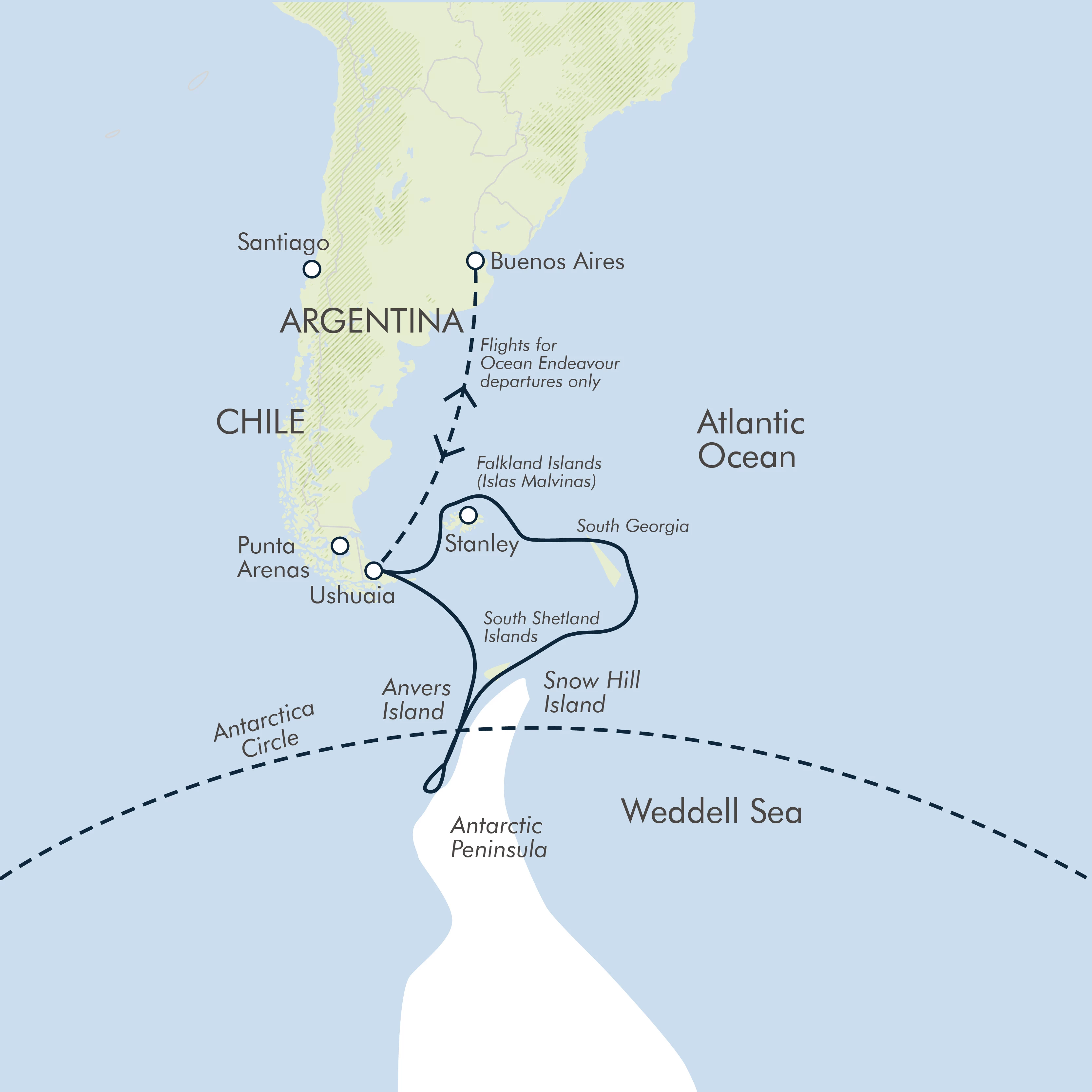 All the highlights of the Falklands, South Georgia and the Antarctic peninsula as well as crossing the Antarctic Circle