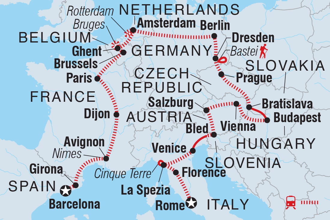 Leave Paris behind and jump on a train to Brussels. When you arrive, join your leader on a walk around the city, where you can sample some traditional Belgian fries along the way. After, you have free time to explore at your own pace. Maybe wander down to the Manneken Pis (Little Peeing Man) – an iconic symbol of Belgium. Or, visit the Musical Instrument Museum to get your fix of cultural history. Tonight, maybe explore Ilot Sacre – a great place to find good food and fun bars.