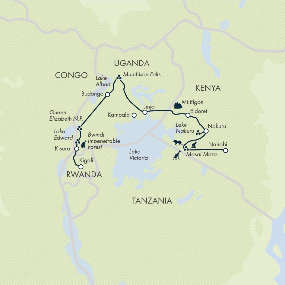 Travel restrictions: Certain areas in Kenya, Uganda and Rwanda are not recommended for travel on the Foreign, Commonwealth and Development Office website. Please note, we do not visit any of these areas on our itinerary and continually keep abreast of changes to FCDO advice.