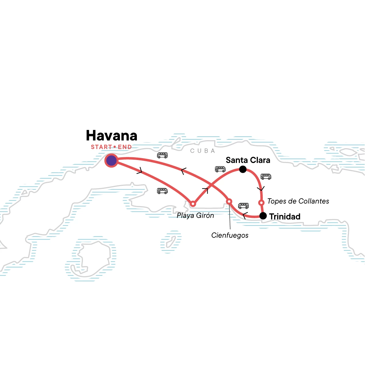 If you are flying into Varadero (VRA), you can purchase a transfer to the starting hotel. Please contact our Sales Team or your Travel Agent for more information.,