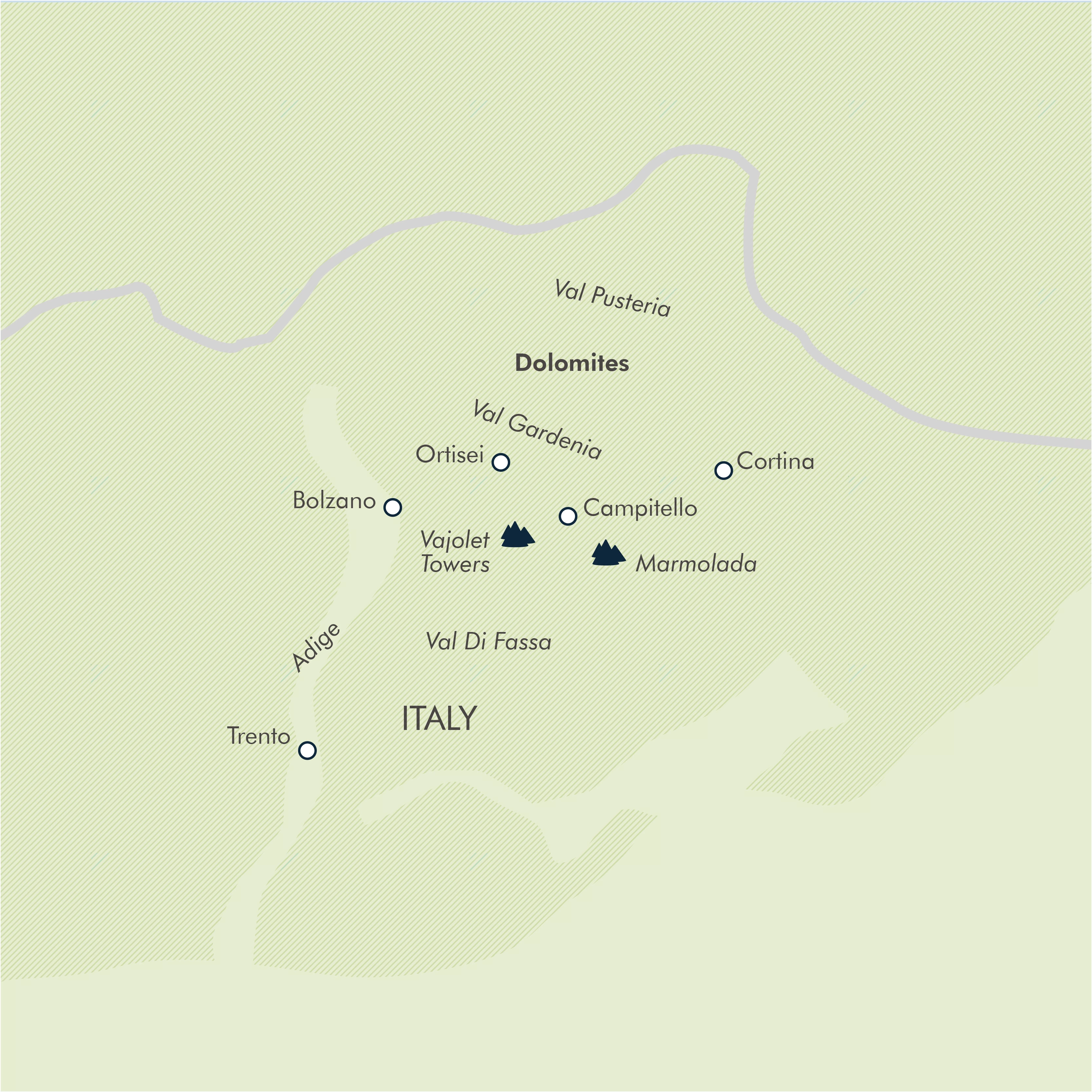 Join our expert mountain leaders and a small group of like-minded adventurers to hike the most scenic trails in the Dolomites. Based at a family-run hotel in the lovely village of Campitello, we walk among jagged limestone peaks and through lush valleys, before returning home for a warm welcome and an Italian feast. With excellent chairlift, cable car and bus links, we can access a huge variety of routes, allowing us to offer two difficulty levels on each walking day: Activity Level 3 (Moderate) and 5 (Challenging). Our expert tour leaders may alter the itinerary based on weather conditions and group ability to ensure everyone's enjoyment.