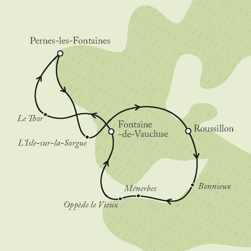 Classification: Self-GuidedActivity Level: 2 (Leisurely/moderate)Average daily distance on move on days: 35km ( 22 miles). No. of days cycling: 3 Terrain: The cycling is mostly on plains or gentle foothills and we have used the quietest possible lanes to link the towns and villages. There are only occasional (unavoidable) short stretches on major roads. One or two parts of the countryside are fairly hilly, so take your time on the steeper climbs and admire the wonderful long-distance views.Vehicle Support: This is a self-guided trip for those who prefer to cycle independently, but with our assistance to take out the stress of the logistics and planning. We arrange your accommodations, provide you with a map and route notes so that you can cycle at your own pace. It is important that you are happy reading maps and following route notes, we make these as accurate as possible and they are regularly checked. As this is a self-guided holiday there is no group and no leader. There may be others on the same departure date as you, but you will not be organised together. The route notes contain a 24-hour emergency assistance telephone number should you need it and in emergencies. Your itinerary has been designed to give you a taste of the picturesque perched villages which pepper Provence's breathtaking, lavender-scented Luberon area. The hilly landscape of the region means the cycling can be challenging at times but for each tough climb you'll be rewarded with a spectacular view. Starting in the mediaeval town of Pernes-les-Fontaines, famous for its numerous ancient stone fountains and lavoirs, you'll enjoy far-reaching views over the Luberon as you make your way to the ochre-red village of Roussillon passing vineyards, chateaux and castles on the way. You then head out along the Ochre Trail and along country lanes to pass through some of the most beautiful villages in Provence - each one offering stirring images along with a history which, in some places, stretches back over a thousand years - before your final stretch takes in sweeping apple orchards, typical French villages, quaint cafes and the fascinating network of caves at Grotte de Thouzon.