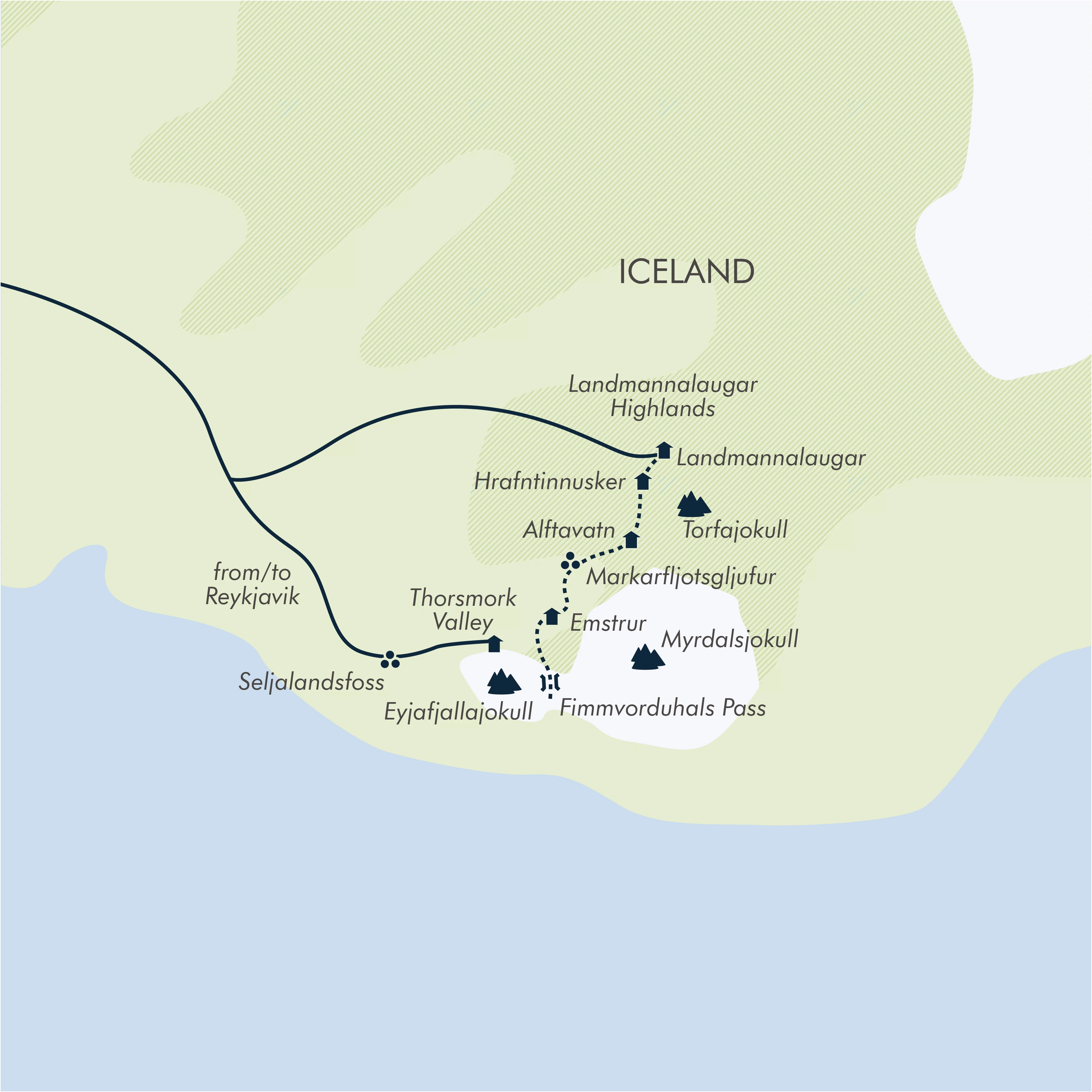 Iceland is now firmly established as one of the most dramatic trekking destinations on the planet – the varied landscapes forged over eons by volcanic eruptions and gigantic glaciers. One of the most popular trails is known as the Laugavegur Trail, and this is the focus of our week. All meals are included while camping, and we start in the colourful Landmannalaugar mountains before heading to the dramatic Thorsmork region where we discover the craters from the 2010 eruption. Few trekking routes can match the striking vistas on offer here. In addition, the early departures offer long days, up to 24 hours of daylight in July, while the late August and early September departures bring darkness and with that the chance to see the Northern Lights.