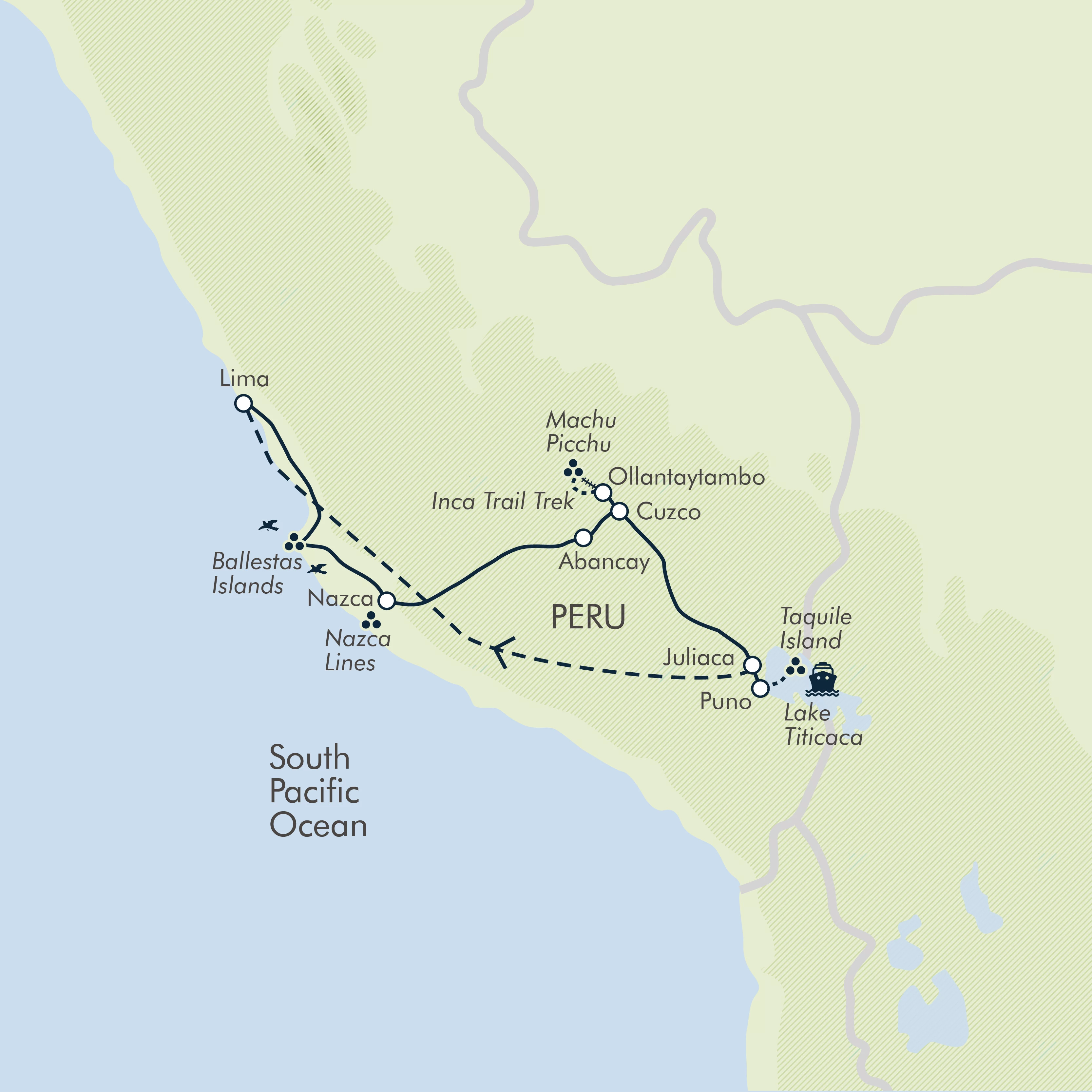 The size of Peru means this trip involves some long drives and you should be prepared for this. However, the buses we use are comfortable and the scenery is outstanding, plus there are several stops to break up the long journeys. The road between Nazca and Cuzco involves long descents and ascents on winding mountain roads and this, combined with the increase in altitude, may affect you if you are prone to travel sickness.