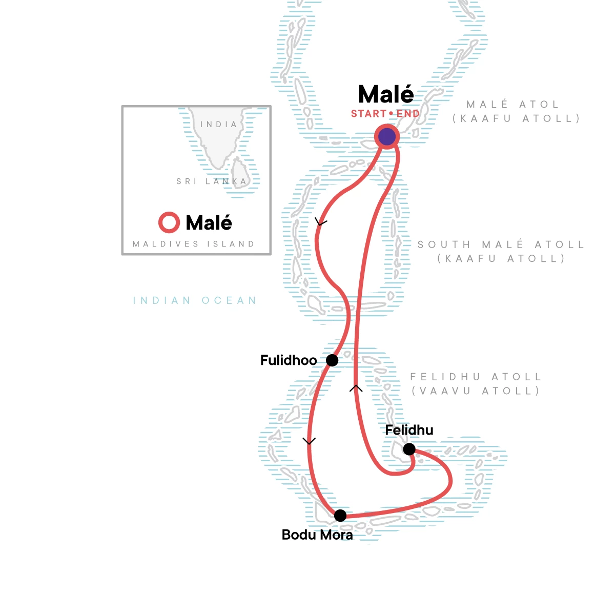 Your Welcome Moment: Welcome Moment - Meet Your CEO and Group. Arrival transfer. Fulidhoo Island visit and Bodu Beru performance. Felidhu Island visit. Bodu Mora Island visit. Snorkelling equipment. Beach time in the Maldives. Seven days aboard a traditional dhoni boat.