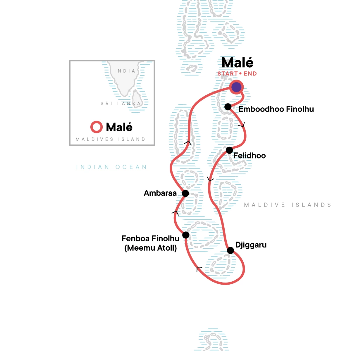 The tour ends on arrival at Malé International Airport.