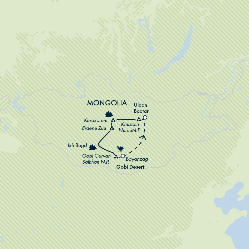 This trip goes off the tourist trail and encounters local nomads. It takes us through spectacular and diverse wilderness and gives us an insight into a fascinating country unlike any other.