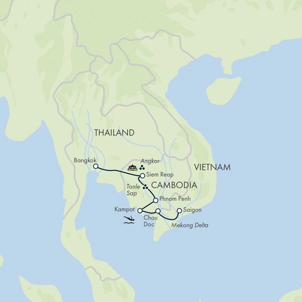 Beginning in frenetic Ho Chi Minh City, we cross three countries in two weeks, making for a varied and fascinating trip. We encounter the majestic ruins of Angkor, the fertile Mekong Delta, and the sobering recent history of Vietnam and Cambodia. Getting off the beaten track, we journey into rural Cambodia with time to explore the pepper plantations of Kampot and a day trip by boat to a tropical island to relax and swim. A short stay in Bangkok rounds off our trip perfectly as we explore colourful markets with a mouth-watering array at meal times. The delicious cuisine is a treasure of this exotic region.