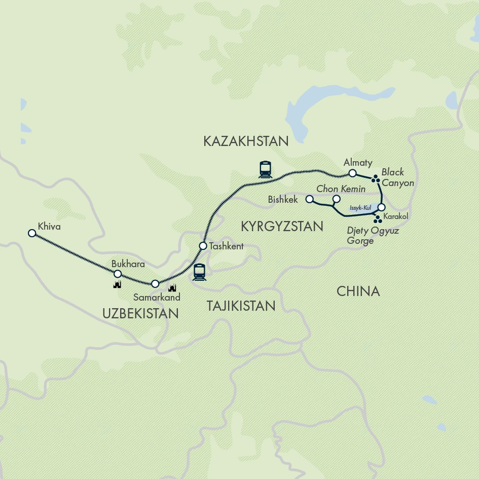 Tour the highlights of Almaty • Sleeper train to Tashkent, Uzbekistan
