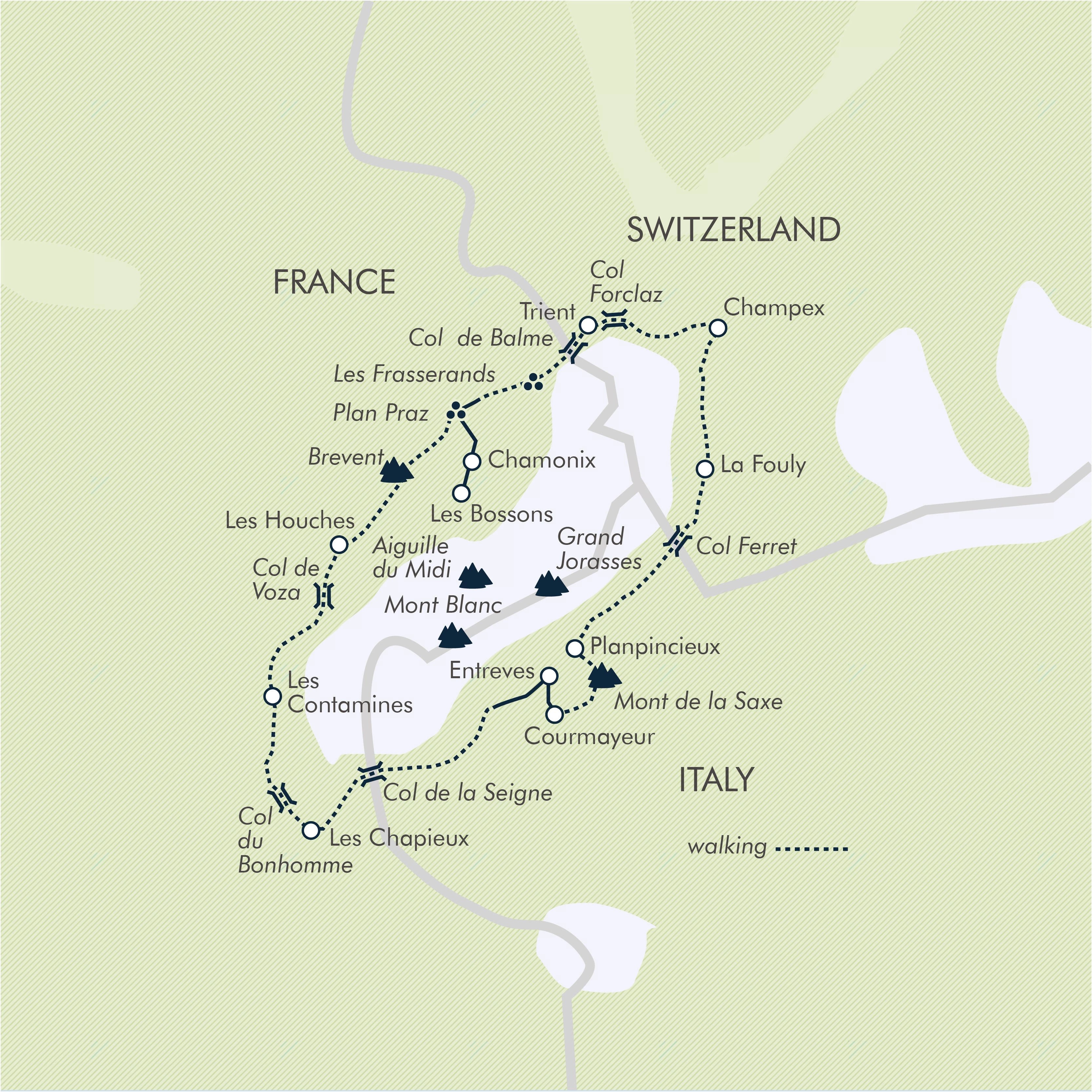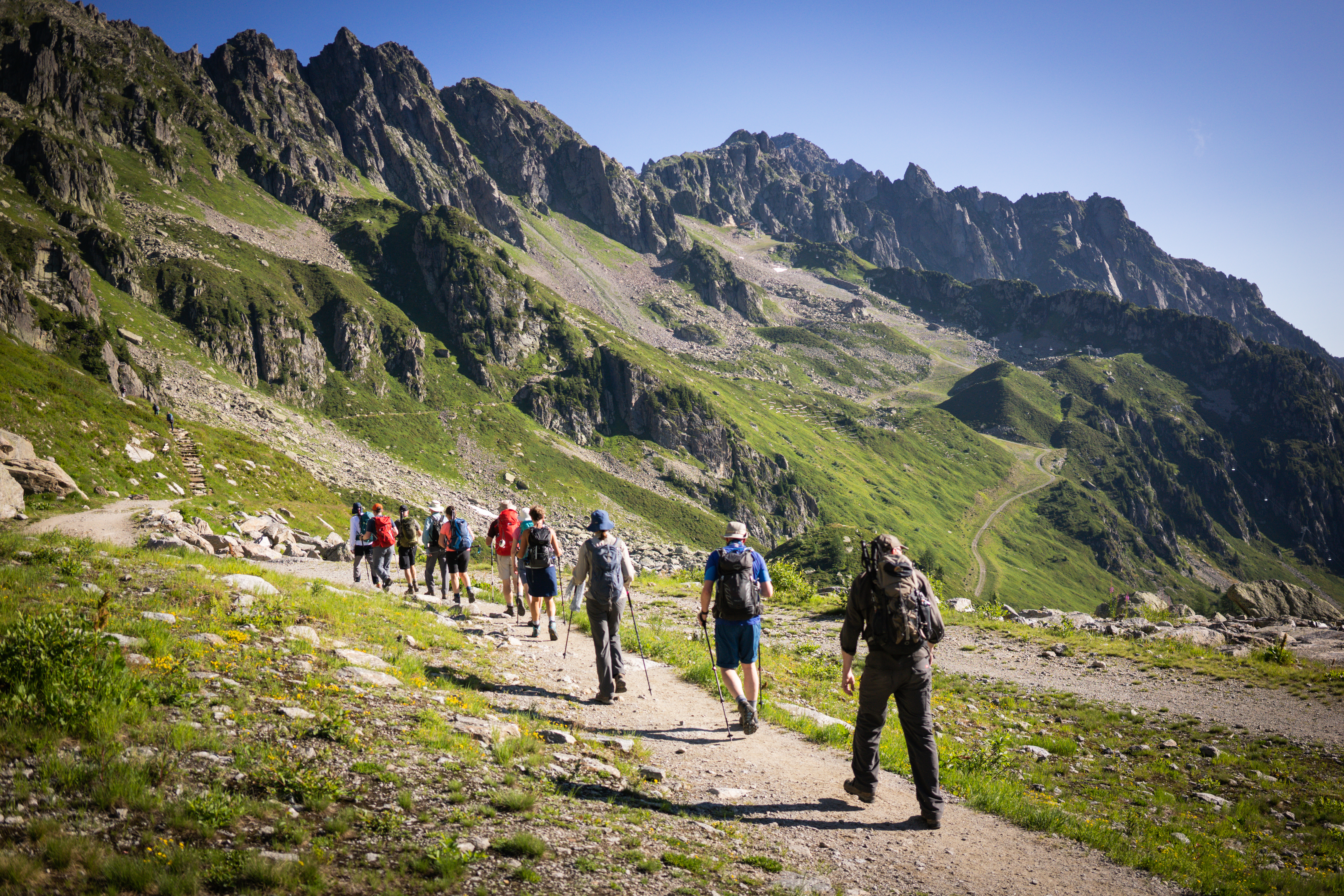Walking profile: Most days are long, quite often involving an ascent of 900m-1,200m (or 3,000ft-4,000ft), equivalent to three to four hours walking uphill, followed by a similar descent. On Day 2, there are two metal ladders to descend from Lac Blanc. These are secured against the rock, consist of approximately 12 steps and are not difficult to climb down. The route throughout is non-technical; however, we will be walking mountain paths and this trip is not advised for severe vertigo sufferers. Please be aware that on Days 6 and 8, we take a short bus transfer to avoid trekking on busy roads.