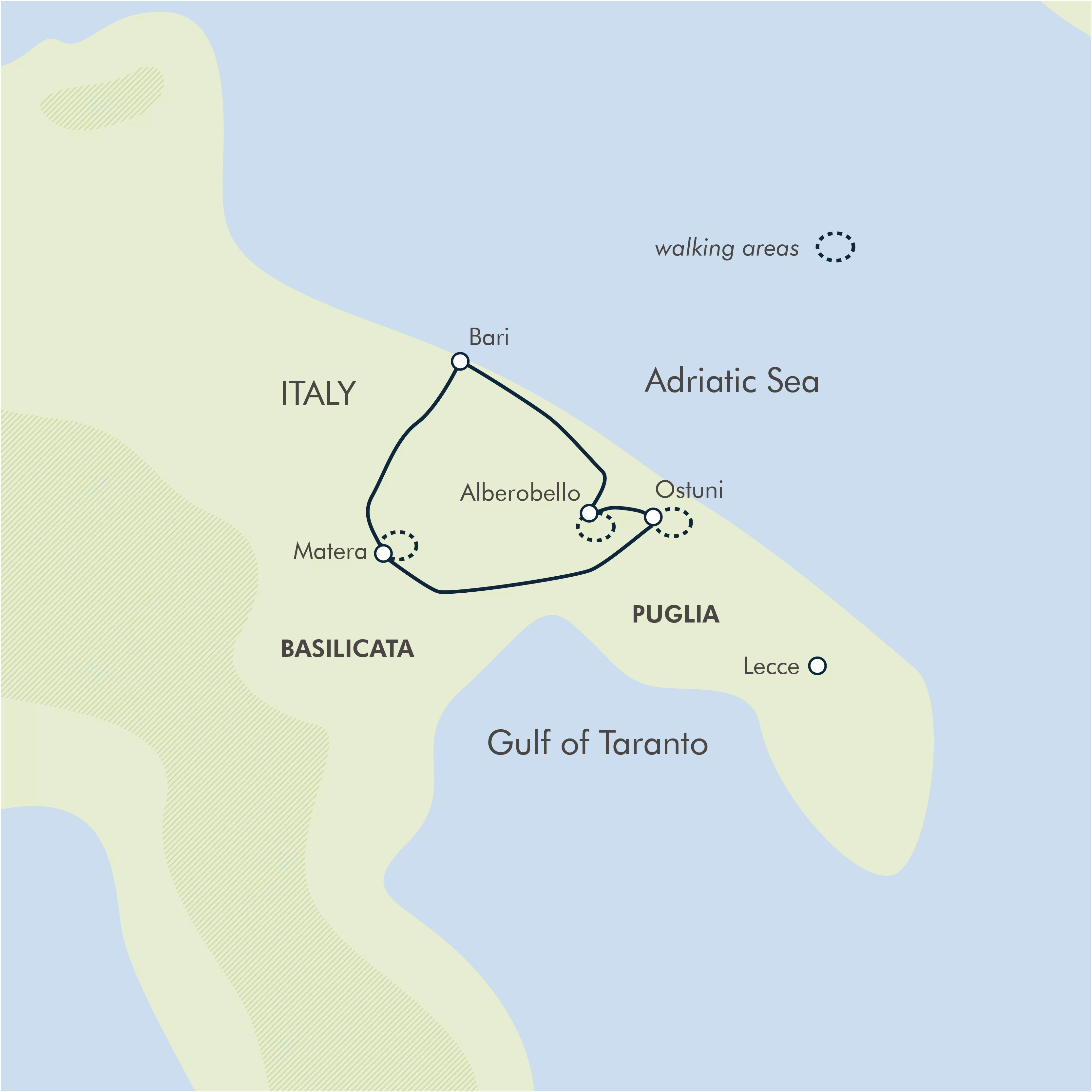 Walk through the South Italian countryside and stay in the fairytale trio of Alberobello, Ostuni and Matera