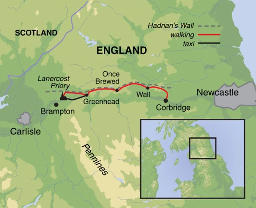 Hadrian's Wall is a UNESCO World Heritage site, is Britain's largest archaeological feature and was the northernmost limit of the Roman Empire. An immense feat of labour, the building of the wall started in AD122 during the reign of emperor Hadrian and took 6 years to complete. Three Roman legions completed the task of building a 73 mile long wall with 80 milecastle fortlets with two observation turrets between each one and then larger garrison forts every five miles or so along the wall. This 5-night self-guided walk along Hadrian's Wall, from West to East, starts at Lanercost Priory and ends in Corbridge, taking in some of the best-preserved Roman sites in the UK. We've chosen this route direction so the prevailing winds (and any inclement weather!) are always at your back and the scenery in this direction is considerably better than the other way round. Follow Hadrian's Wall Path across the rolling countryside and rugged moorland of Northumberland. The route passes the world-famous Sycamore Gap and over craggy hillsides, such as those of Walltown, Winshield and Sewingshields Crags. You'll have the possibility of visiting some amazingly well-preserved sites including the Roman forts of Birdoswald, Vindolanda, Housesteads and Chesters. These sites offer a captivating journey into the history and significance of this iconic frontier and allow you to truly appreciate the engineering feat that marked the northernmost boundary of the Roman Empire. Wander through the ruins of a Roman fort, a turret, and a milecastle, each telling a unique story of life along the wall. Delve into the story of Hadrian's Wall through informative displays, artifacts, and interactive elements that bring the history of the Wall to life. Gain a deeper understanding of the strategic importance of this frontier and the lives of those who inhabited and defended it. You finish your route in the affluent and once-bustling Roman town of Corbridge. Stay in welcoming inns, guesthouses and B&B's with hearty Northumberland breakfasts to set you up for a day of exploring.